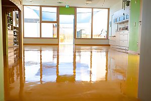 Sobald sich die Kinder und Erzieherinnen in die Sommerferien verabschiedet hatten, machten wir uns in Baiersdorf ans Werk. Für Kindergärten und Kitas bietet sich die kurze Pause für eine professionelle Grundreinigung und die intensive Pflege der strapazierten Böden an.